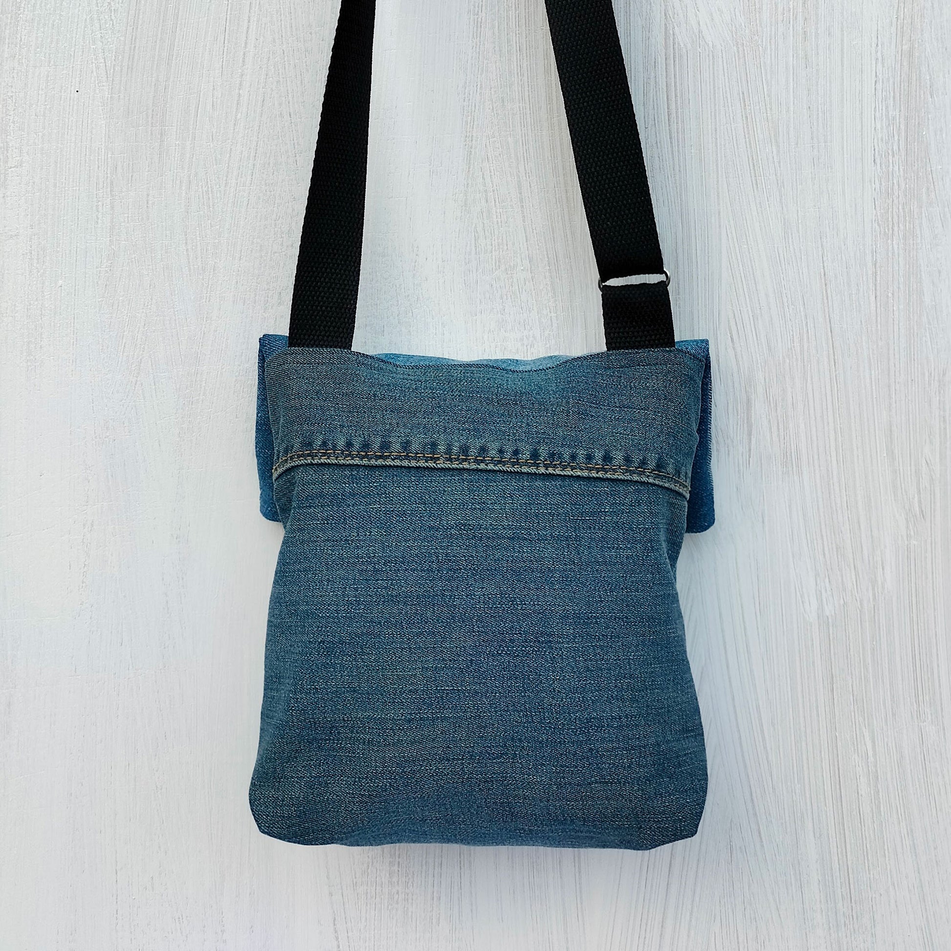 - El tono azul clásico de la tela vaquera combina fácilmente con cualquier estilo. Cada bolso es único, elaborado a mano con dedicación y atención al detalle.
