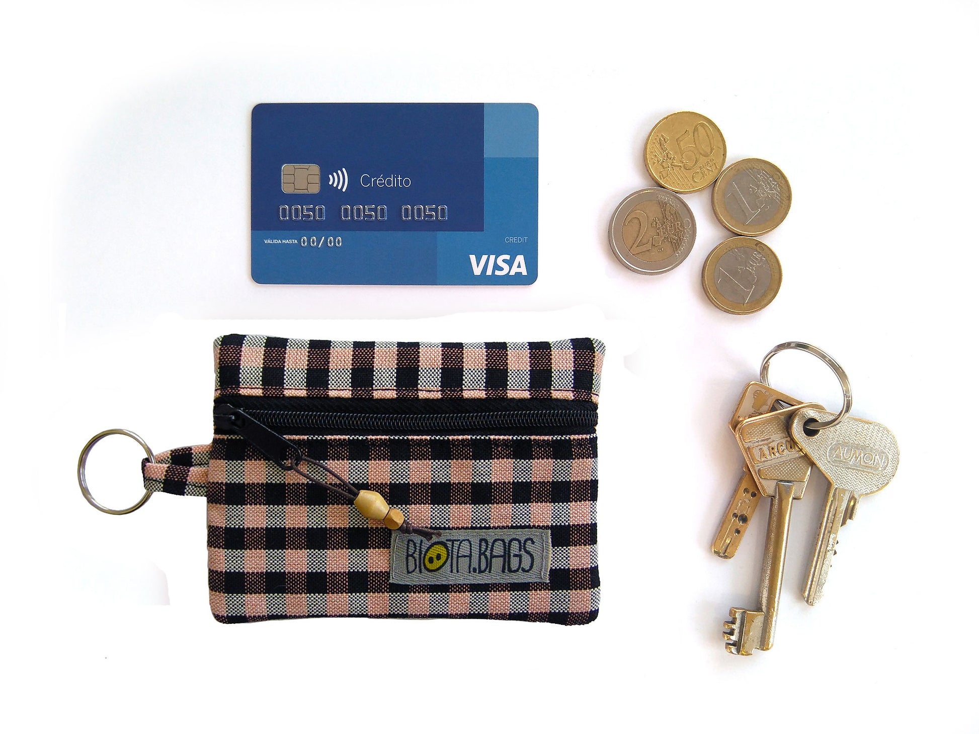 Pequeño monedero hecho con tela de Farcell, muy práctico para llevar lo justo, monedas, billetes, tarjetas, llaves… Tiene el tamaño justo para que quepan estas cosas y no las tengas que llevar sueltas en el bolsillo o en una cartera grande.