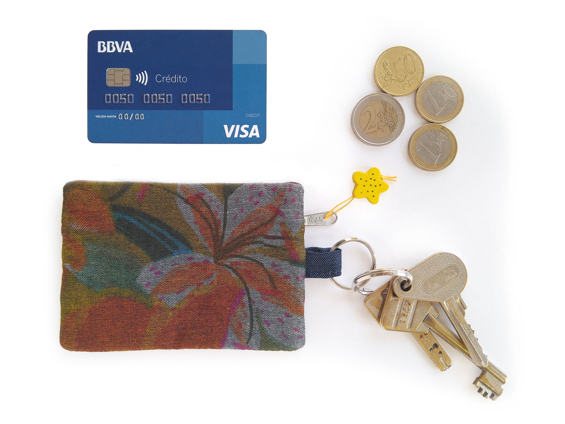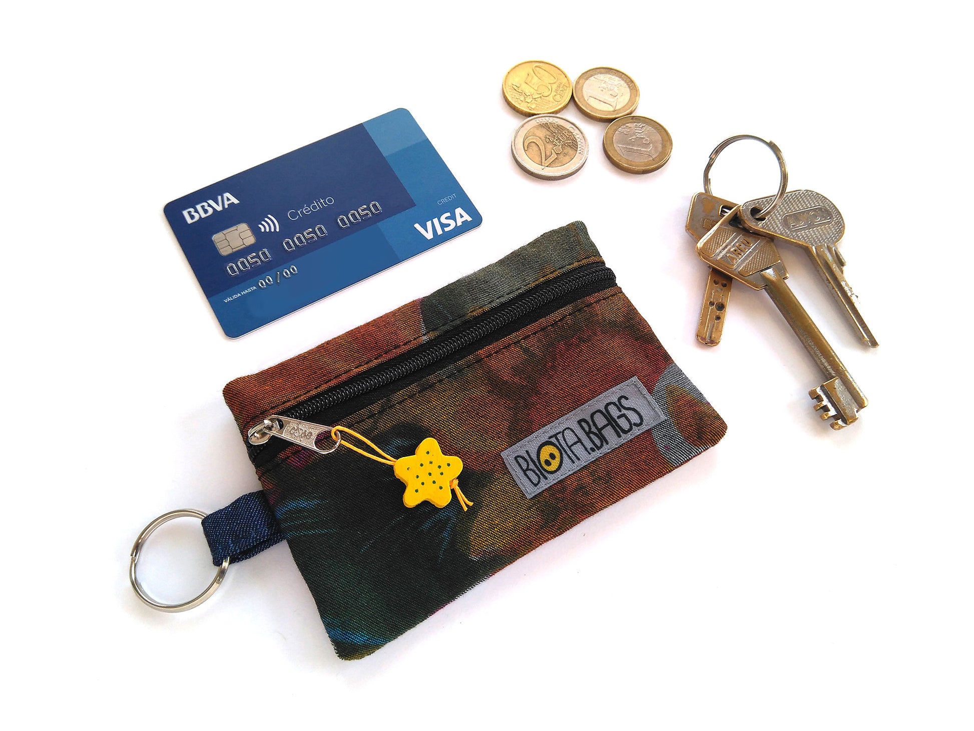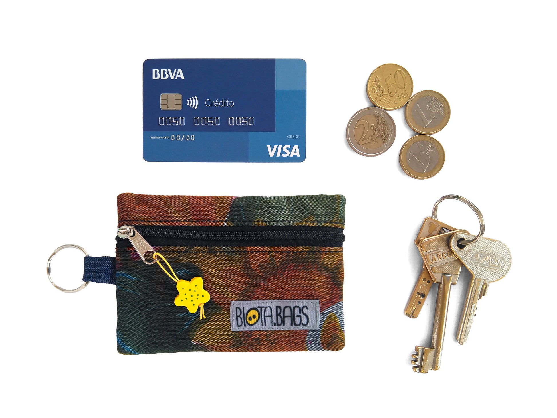Pequeño monedero hecho con tela de Flores, muy práctico para llevar lo justo, monedas, billetes, tarjetas, llaves… Tiene el tamaño justo para que quepan estas cosas y no las tengas que llevar sueltas en el bolsillo o en una cartera grande.