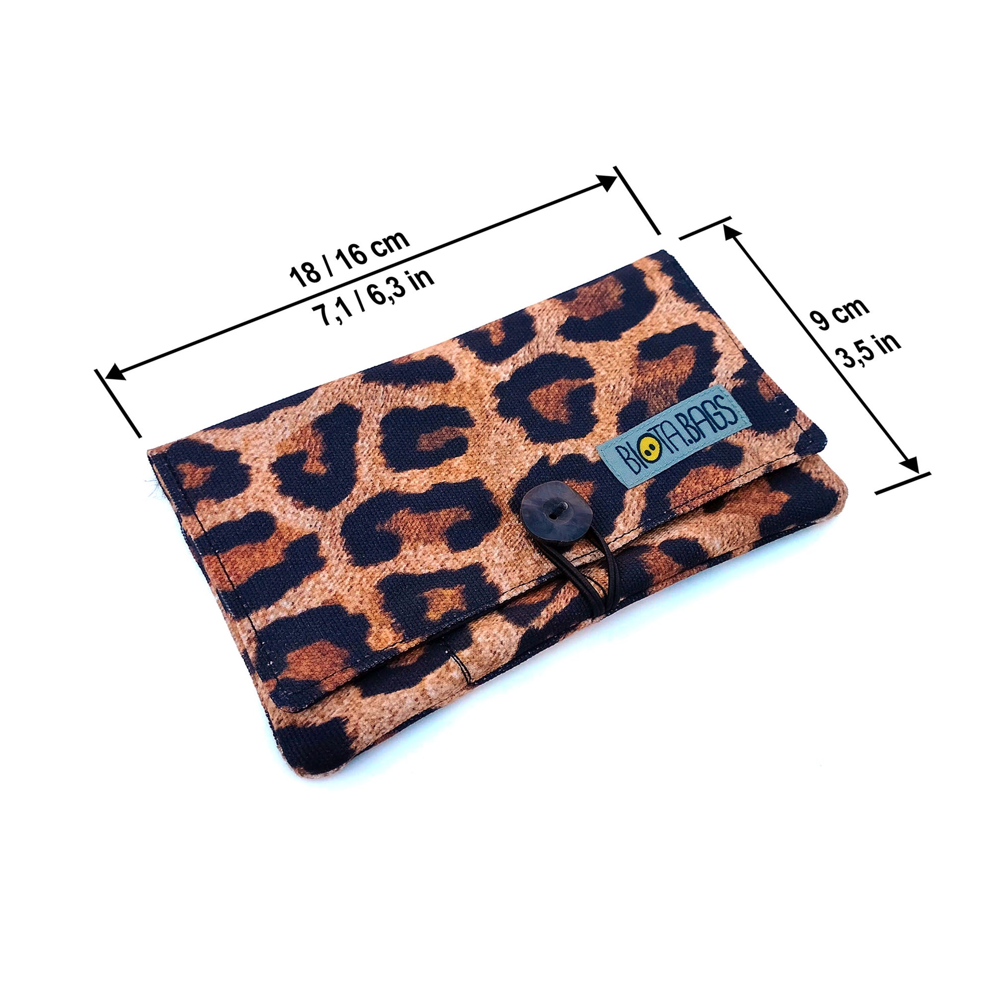 Funda para tabaco de liar de tela Animal Print Leopardo, cosida con mucho cariño en mi taller de Ullastrell (Barcelona). Aprovecho al máximo la tela para generar el mínimo residuo posible, hay que cuidar el Planeta!