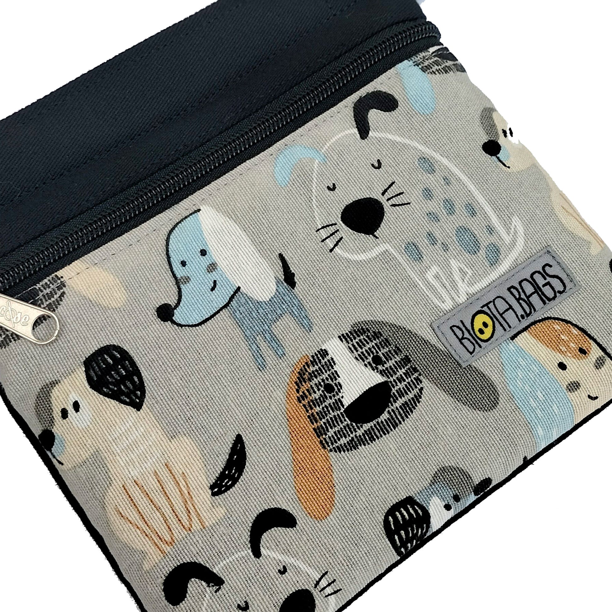 Confeccionada con loneta estampada de Perritos y sarga color Negro.